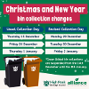 Waste collections due on Christmas Day, Boxing Day and New Years Day have been rearranged. You can find your collection schedule online by visiting Find your bin day.