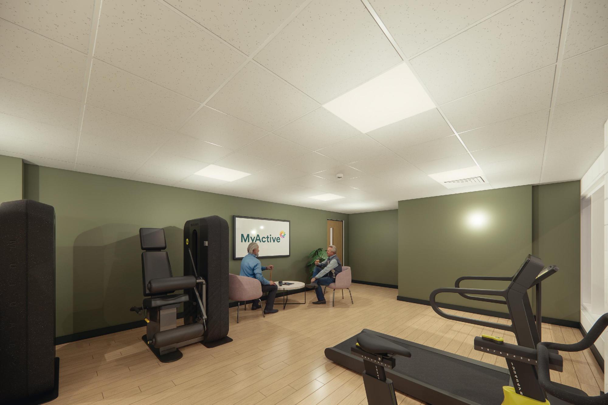 The existing small studio will be converted to create a dedicated active wellbeing suite with 10 stations. This space will be dedicated to engaging people who may not have the confidence to access a mainstream gym, such as people recovering from illness or injury or suffering from a long-term health condition, or they may have been referred for exercise by their GP or health professional.