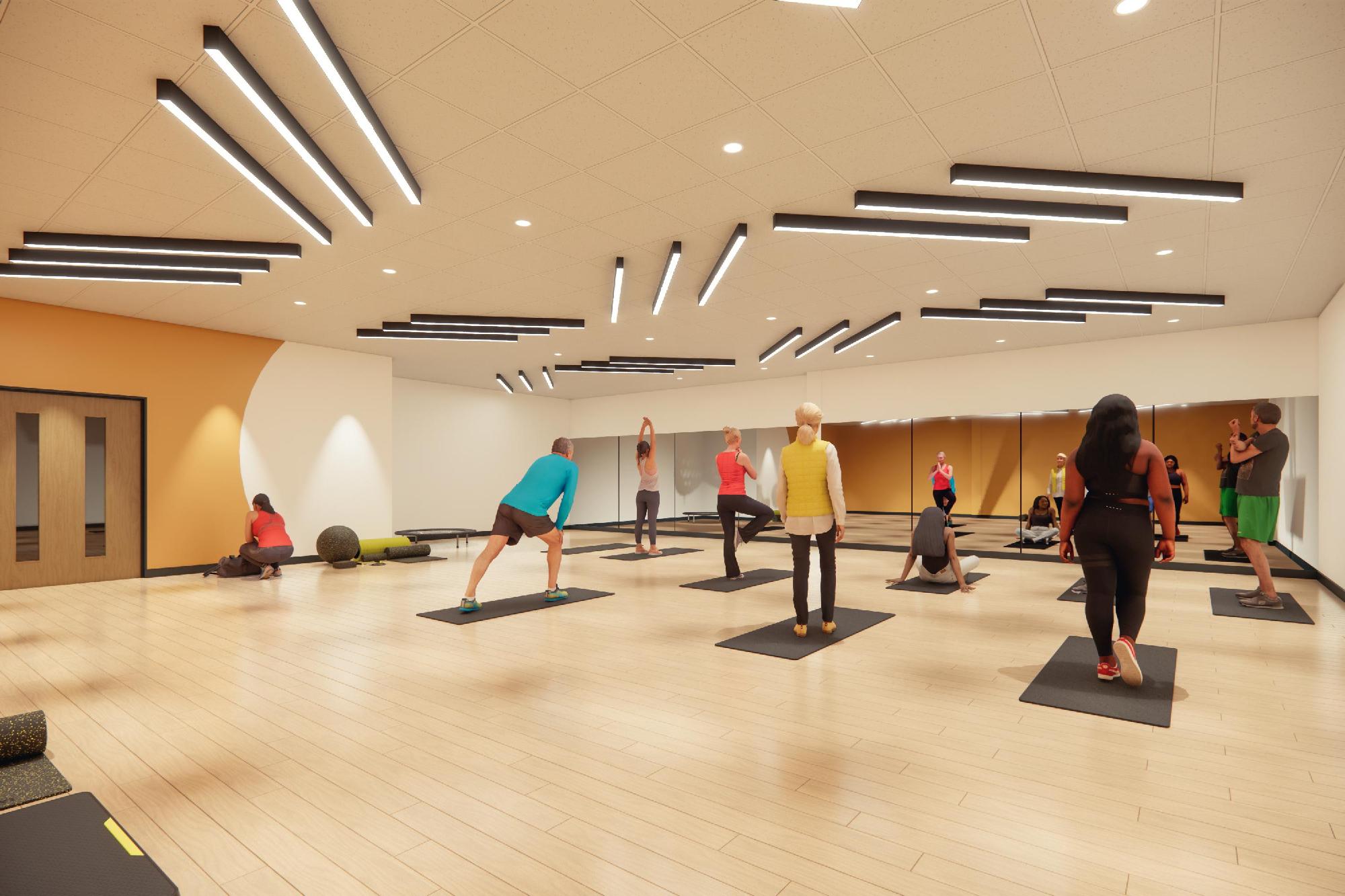 The enhanced gym space will include new flooring, feature lighting and modern wall graphics, to give a modern and vibrant look and feel to the space.