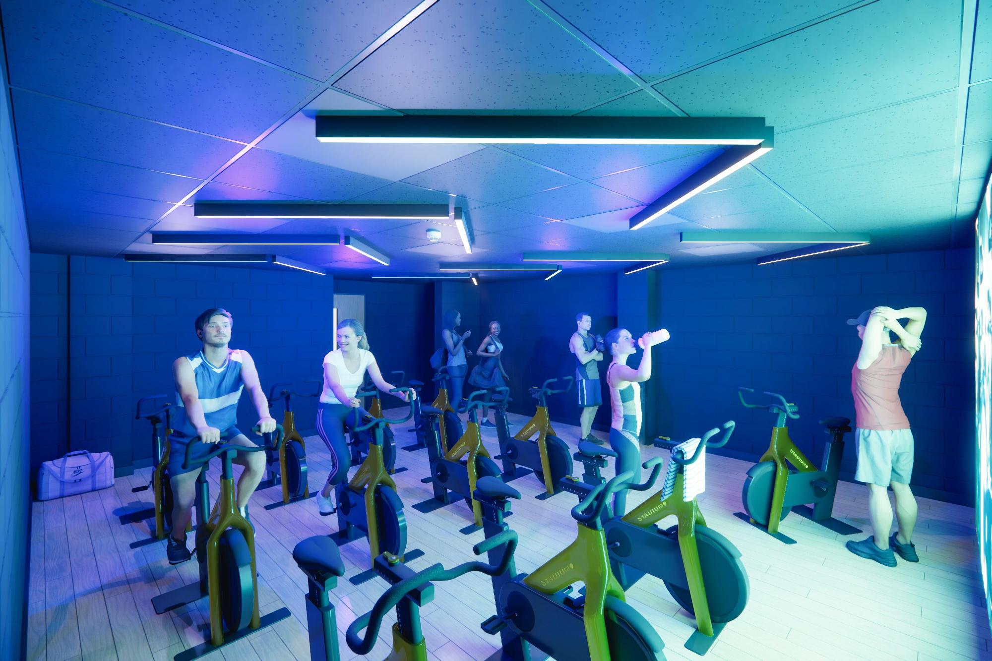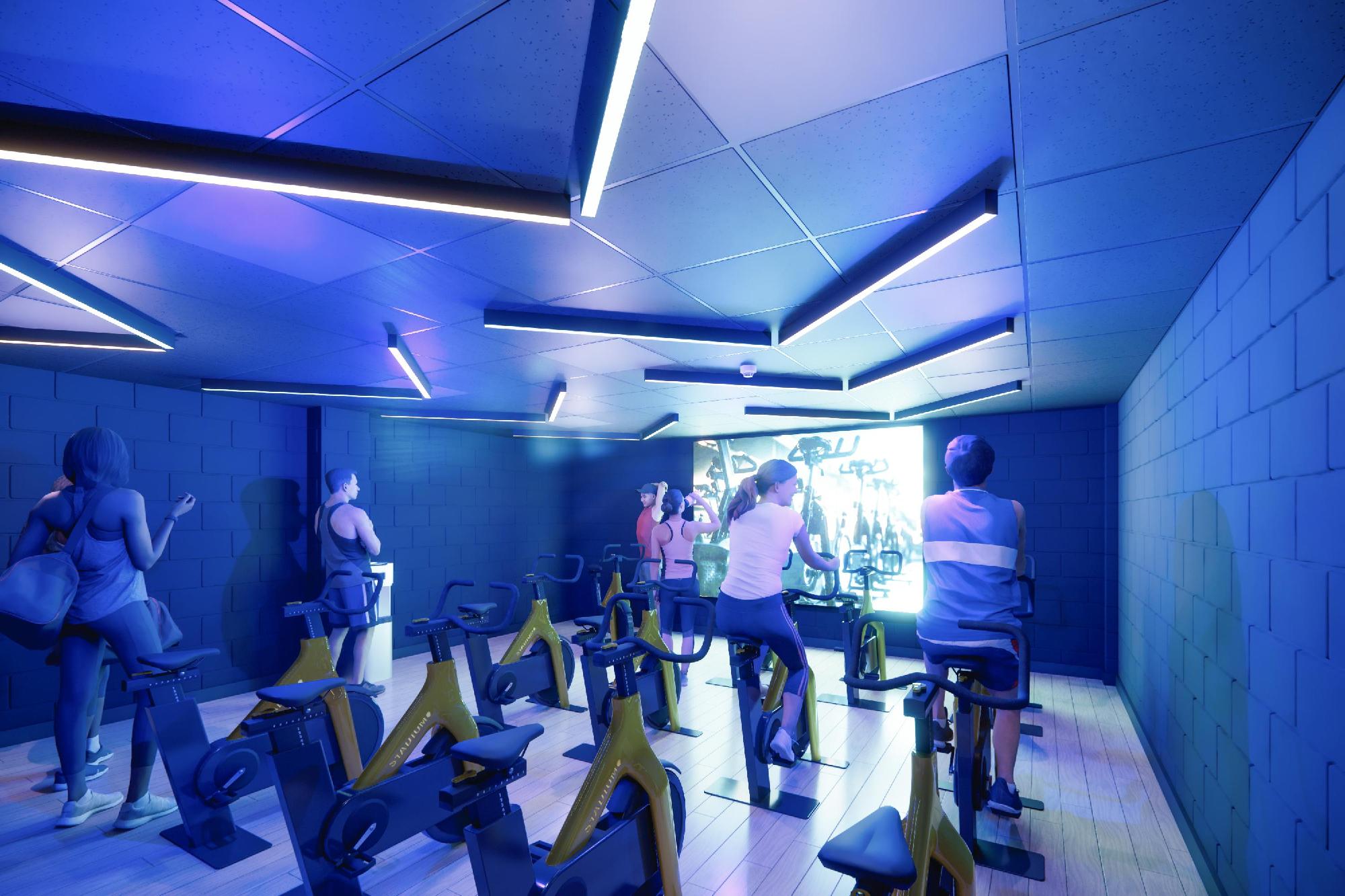 The existing group cycling studio will be transformed into an immersive space including 20 of the latest bikes, modern audio/visual technology, lighting and decoration. The new space will be completely refurbished and equipped with the latest technology, widening the offer to include both instructor-led and interactive classes.